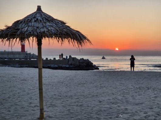 '서핑 성지' 강원 양양군 현남면 인구해변 앞으로 붉은 해가 떠오르고 있다./사진제공=뉴스1 |