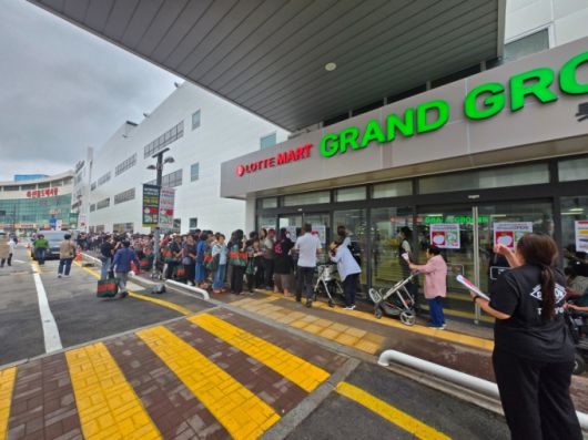롯데마트 구리점 오픈 전부터 많은 고객이 대기줄을 선 모습. /사진=유엄식 기자 |