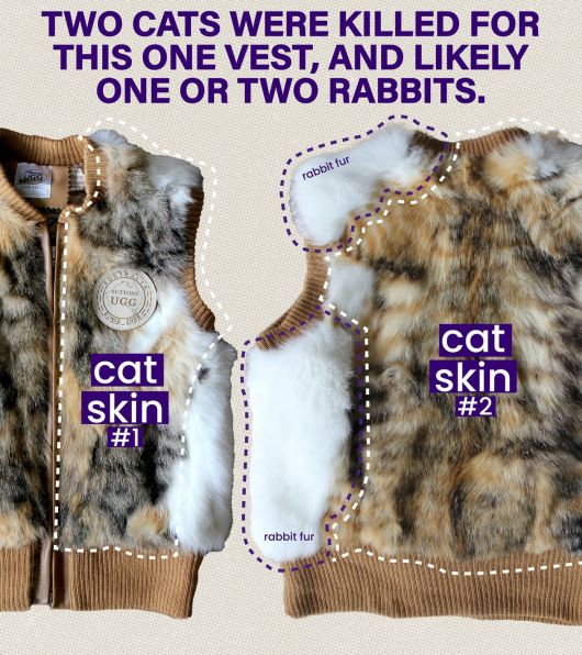 해당 단체는 멜버른 시내에 위치한 ‘서튼스 어그(Suttons UGG)’ 매장에서 판매된 아동용 조끼가 고양이 가죽과 토끼털로 제작된 사실을 밝혀냈습니다.