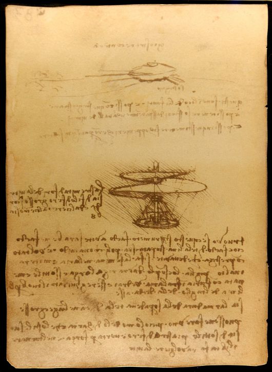 프랑스 학술원(Institut de France)이 소장하고 있는 레오나로드 다빈치의 공중 나사 설계도./위키미디어 |