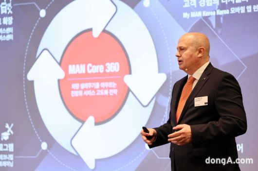 이날 기자간담회에서는 만트럭버스그룹의 미래 상용차 시장을 선도하기 위한 비전과 전략과 국내 출범 1주년을 맞은 만파이낸셜서비스의 현황, 그리고 국내 서비스 혁신을 위한 실행전략인 만 코어 360 전략을 각각 발표했다.