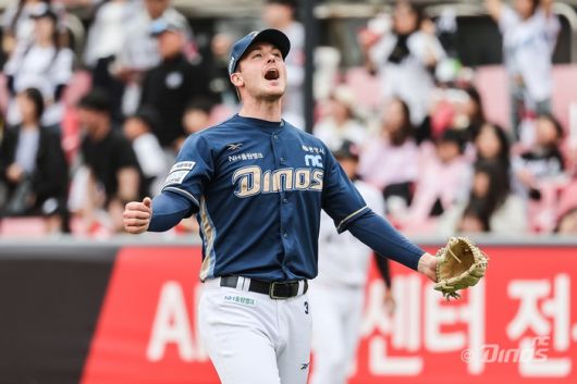 NC 라일리가 호투를 펼친 뒤 ‘포효’ 하고 있다. 사진 | NC 다이노스 |