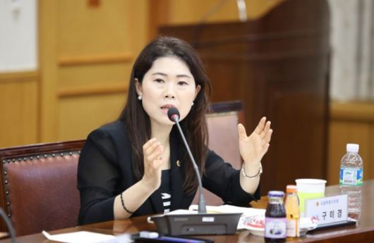 구미경 의원이 회의에 참석해 발언을 하고 있다. |