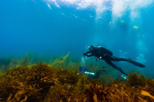 5mm 수트를 입고 입수하니 처음엔 차가운 느낌이었지만 이내 편안해졌다. 수심 25~30m까지 내려갔다. 돌 사이에 낀 폐어구가 여기저기 눈에 들어왔다. 다이버들은 문어잡이 배가 던졌다가 수거하지 못한 통발을 건져올렸다.