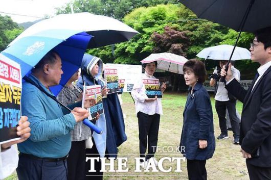 [더팩트ㅣ대전=정예준 기자] 박선영 진실화해를위한과거사정리위원회(진화위) 위원장이 대전 동구 산내동 골령골을 방문한 데 대해 산내 골령골 학살 피해자 유족들이 거세게 항의했다.