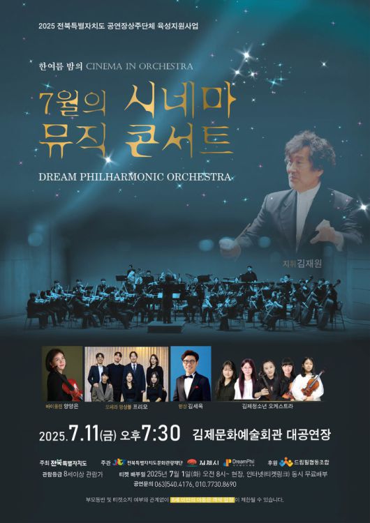 [김제=뉴시스]고석중 기자 = 전북자치도 김제문화예술회관이 다음달 11일 오후 7시30분에 '7월의 시네마 뮤직 콘서트'를 개최한다.