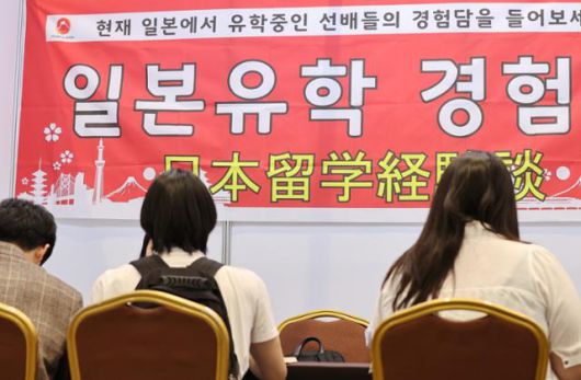 유학·취업 준비생들이 지난달 18일 서울 강남구 코엑스에서 열린 '제10회 일본유학취업 박람회' 일본 유학 관련 부스에서 상담받고 있다. 연합뉴스 |
