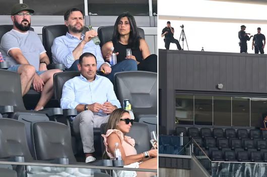 이 가운데 낯익은 얼굴이 눈에 띄었다. 셔츠 차림의 JD밴스 부통령이 VIP 구역에서 아내, 지인과 함께 경기를 관람하는 모습이 포착된 것이다. 부통령을 경호하기 위해 경기장 지붕에 저격수 3명이 배치된 모습도 눈길을 끌었다.