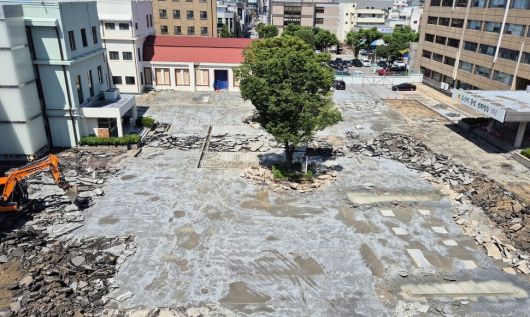 이곳은 ‘광장 마니아’ 김 지사가 추진하는 네 번째 충북도청 광장이다. 첫 광장은 2023년 10월 1억9200만원을 들인 본관 앞 ‘잔디광장’이다. 본관 앞 정원에 있던 오엽송·낙엽송·향나무 등 190여 그루를 이식·제거하고 1973㎡ 크기로 잔디를 깔았는데, 잔디 보호 등을 이유로 출입을 막는 ‘금줄’이 처진 날이 더 많았다.