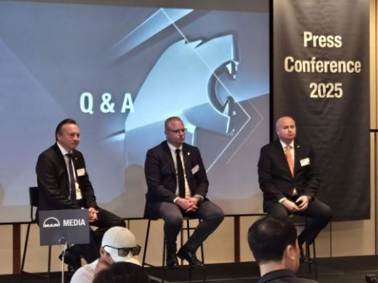 이날 간담회에는 토마스 헤머리히 만트럭버스그룹 세일즈 인터내셔널 총괄부사장, 예스퍼 나이스트룀 트라톤&만파이낸셜서비스(MFS) 총괄디렉터, 피터 안데르손 만트럭버스코리아 사장 등이 참석했다.