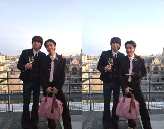 두 사람은 파리 시내가 내려다보이는 루프탑에서 여유로운 미소를 지으며 포즈를 취하고 있다. 공유는 와인을 손에 들고 여유로운 미소를, 제이홉은 연핑크색 루이비통 백을 든 채 특유의 유쾌한 제스처를 선보였다.