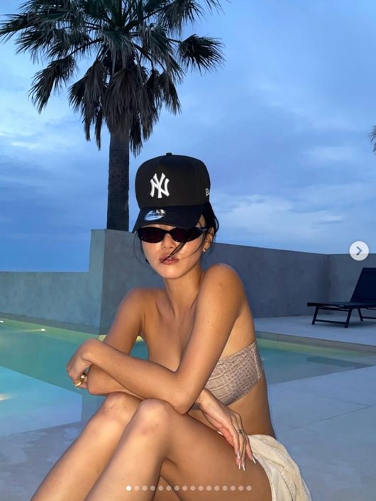 특히 화사는 과감하게 비키니 자태를 뽐내 눈길을 끌었다. 비키니를 입고 선글라스와 모자를 착용한 채 포즈를 취하며 글래머 몸매를 자랑했다.