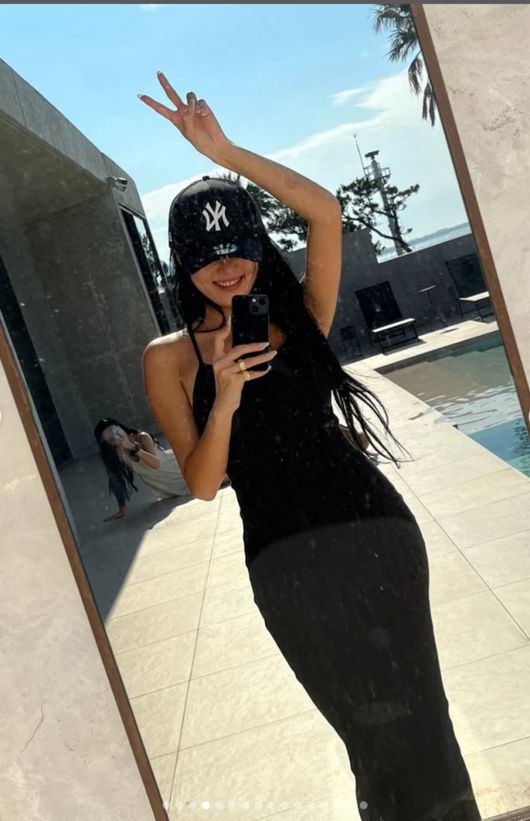 또 다른 사진에서는 몸매가 드러나느 검정색 원피스를 입고 있었다. 화사는 긴생머리를 늘어트리고 잘록한 허리와 늘씬한 자태를 뽐냈다.