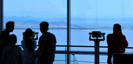 시민들이 인천 강화군 강화평화전망대를 찾은 시민들이 북한 개풍군을 바라보고 있다. /연합 |