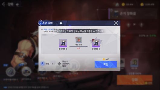 하위 장비를 재료로 사용해 강화 단계를 계승할 수 있다