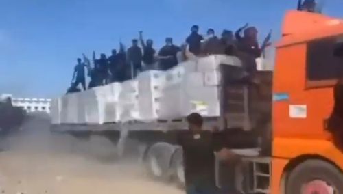 실제 이 영상을 보면 복면을 쓴 무장대원들이 가자지구로 이동하는 구호품 트럭에 올라타 아무런 제지도 받지 않는 모습이 담겼다. 무장대원들이 환호하며 하늘을 향해 소총을 쏘는 소리도 들린다.