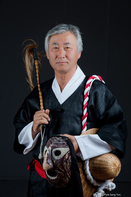 이윤석은 국가무형유산 고성오광대놀이의 말뚝이춤 인간문화재다. 조용배와 허종복을 잇는 명무로 탈을 쓰고 채찍을 들면 ‘말뚝이춤’이요, 탈을 벗고 활개를 펼치면 ‘덧배기춤’이다. 박상윤 제공 |