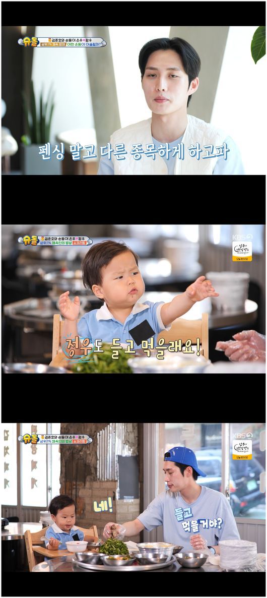 김준호는 정우에게 다시 한 번 "태권도, 태권도, 태권도, 태권도 중에 뭐가 하고 싶어?"라고 물었다. 선택지가 없었다. 그럼에도 정우는 "펜싱!"이라고 해맑게 외쳤다.