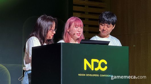 ▲ 왼쪽부터 넥슨 메이플스토리 구유리, 정현정, 김재유 기획자 (사진; 게임메카 촬영) |