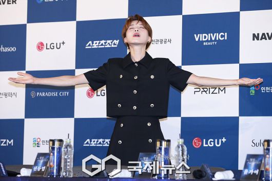 (서울=국제뉴스) 이대웅 기자 = 개그우먼 장도연이 25일 서울 영등포구 CGV여의도에서 열린 '제4회 청룡시리즈어워즈(Blue Dragon Series Awards)' 핸드프린팅 행사에 참석해 포즈를 취하고 있다.