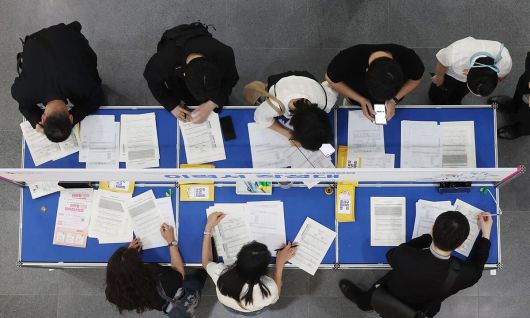26일 서울 강서구 서울창업허브엠플러스에서 열린 ‘2025 강서구 취업박람회’를 찾은 구직자들이 이력서를 작성하고 있다. 이번 취업박람회에는 마곡 입주기업, 강서 미라클메디특구 회원사 등 26개 기업이 참여해 약 177명을 채용할 예정이다. 이제원 선임기자 ⓒ 세상을 보는 눈, 세계일보