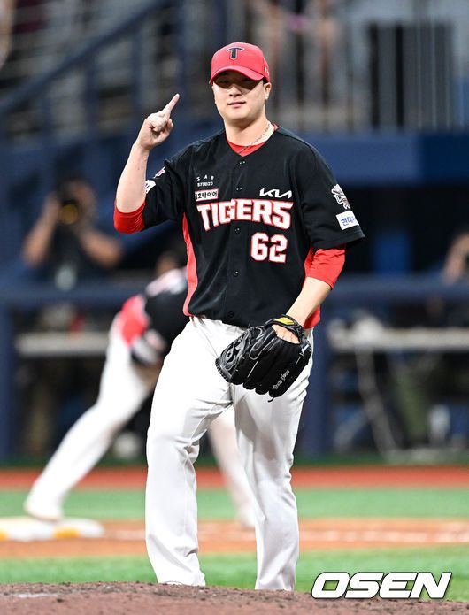 [OSEN=고척, 이대선 기자] 26일 오후 서울 고척스카이돔에서 2025 신한 SOL Bank KBO리그 키움 히어로즈와 KIA 타이거즈의 경기가 열렸다. 키움은 하영민, KIA는 김건국을 선발 투수로 내세웠다. 9회말 2사 2루에서 KIA 정해영이 키움 송성문을 땅볼로 처리하고 환호하고 있다. 2025.06.26 /sunday@osen.co.kr