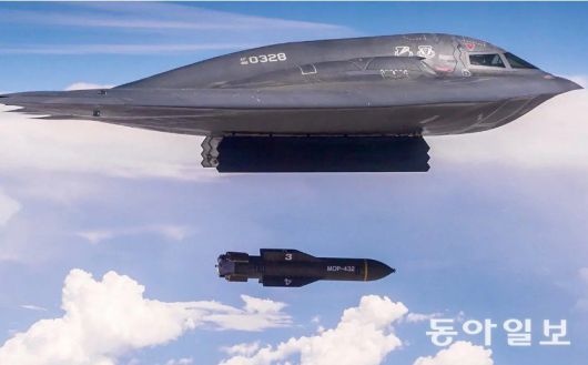 B-2 스텔스 폭격기의 벙커버스터(GBU-57) 투하 훈련 모습. 동아일보 DB |