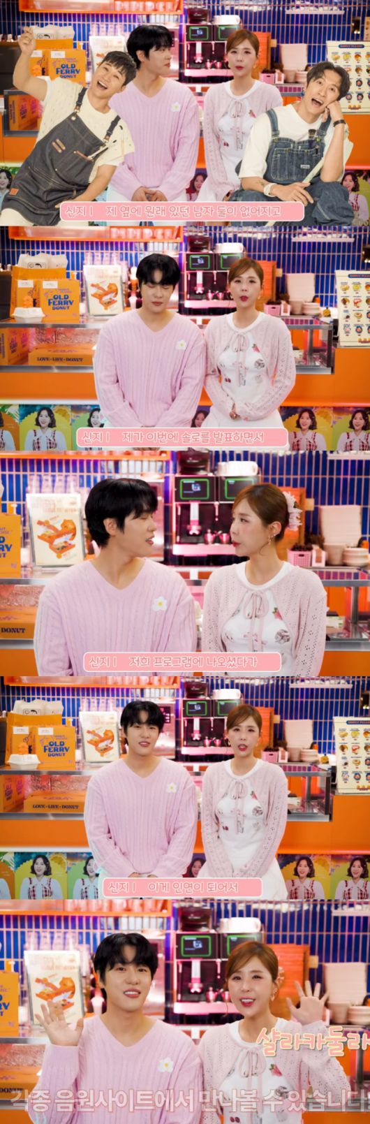 듀엣 '샬라카둘라'를 발표한 신지와 문원은 카메라 앞에 나란히 앉아 인사했다.