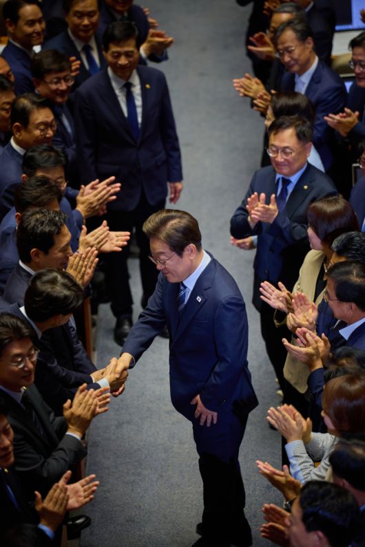 이 대통령은 “저성장이 지속되면 기회의 문이 좁아지고 경쟁과 갈등이 격화되는 악순환에 빠지게 된다”며 “새로운 성장 동력을 만들고 성장의 기회와 결과를 함께 나누는 ‘공정성장’의 문을 열어야 양극화와 불평등을 완화하고 ‘모두가 함께 잘사는 세상’으로 나아갈 수 있다”고 강조했다. 특히 “자본시장의 투명성과 공정성을 회복하면 경제도 살고 기업도 제대로 성장 발전하는 선순환으로 코스피 5000 시대를 열 수 있을 것”이라고 확신했다. 이어 “인공지능(AI), 반도체 등 첨단기술 산업에 투자하고 재생에너지 중심의 에너지 전환을 조속히 완료해 기후위기와 RE100에 대응해야 한다”고 덧붙였다. 이 대통령은 또 “바이오 산업과 제조업 혁신, 문화 산업을 육성하는 한편 외교의 유일한 선택 기준은 국익”이라며 실용을 재차 강조했다.