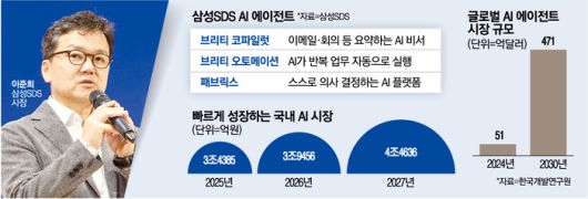 삼성SDS는 26일 서울 잠실캠퍼스에서 ‘생성형 AI 미디어데이’를 열고 스스로 판단하고 업무를 수행하는 AI 에이전트 전략을 발표했다. 이준희 삼성SDS 대표이사 사장은 이날 △생성형 AI 플랫폼 ‘패브릭스’ △협업형 AI 서비스 ‘브리티 코파일럿’ △업무 자동화 솔루션 ‘브리티 오토메이션’ 등을 공개했다. 그는 “이제 AI는 사람의 지시만 기다리는 조력자에서 벗어나, 스스로 문제를 인식하고 해결하는 ‘에이전틱(Agentic)’ 단계로 진화하고 있다”며 “AI 에이전트 시대를 선도하겠다”고 강조했다.