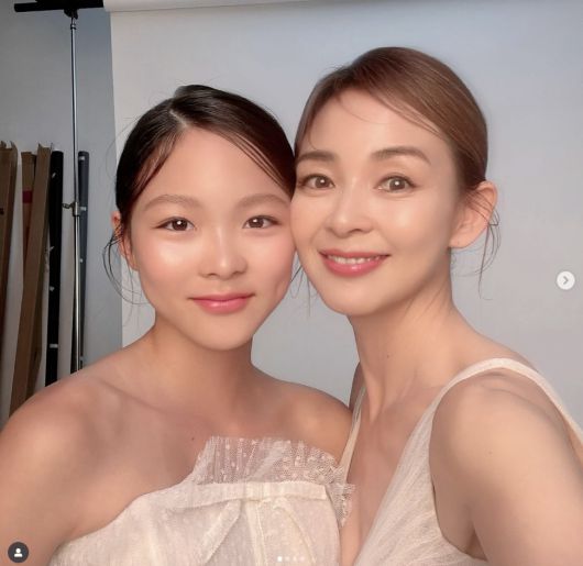 공개된 사진에서 추사랑은 엄마의 옆에서 하얀 드레스를 입고 포즈를 취했다. 모델인 늘씬한 엄마의 옆에서도 크게 차이가 없는 훌쩍 자란 키와 엄마를 빼닮은 미모를 자랑하는 모습이다.