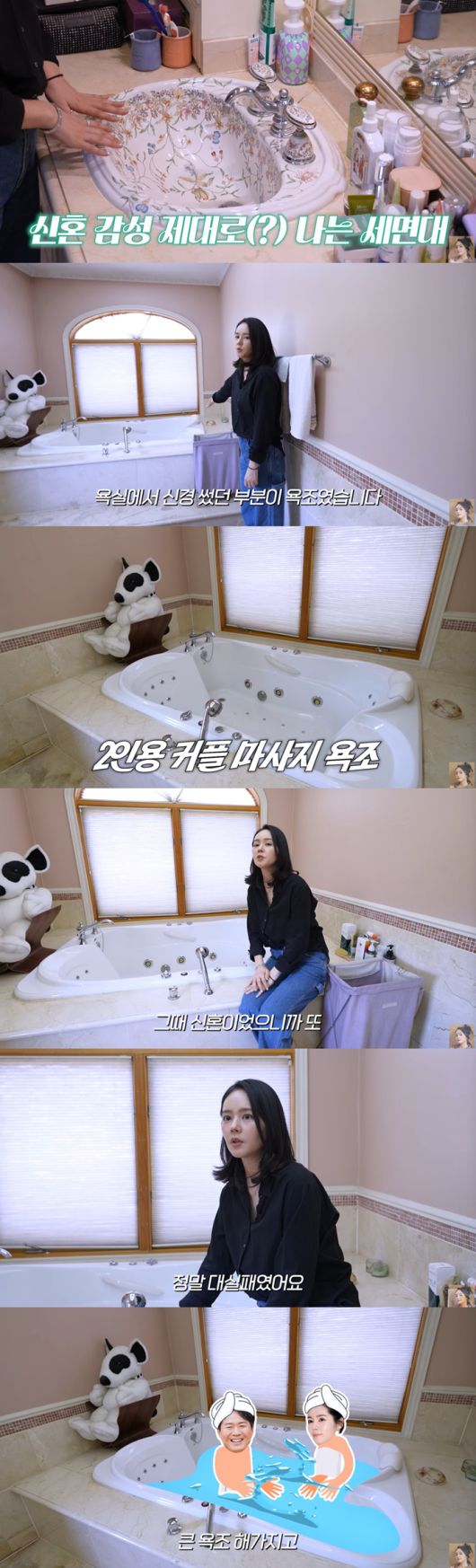 또한 특이한 인테리어의 화장실도 공개했다. 화려한 세면대부터 커다란 마사지 욕조를 발견한 한가인은 "욕실에 신경 쓴 게 욕조다. 진짜 넓지 않나. 그때 신혼이었으니까 둘이 같이 쓰겠다는 야무진 포부로 이렇게 큰 걸 했다. 근데 대실패였다"고 고백했다.
