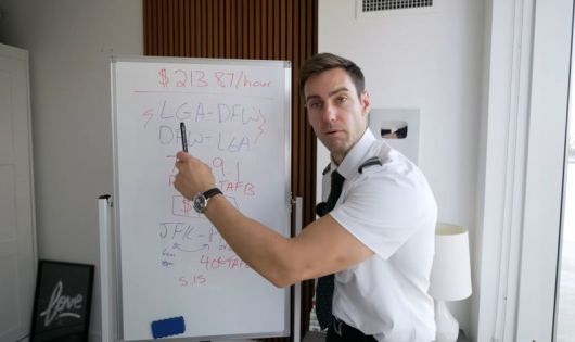 그는 유튜브를 통해 시간당 213.97달러(약 30만원)을 번다고 밝혔다. 그러나 조종사는 일반 직장인처럼 정해진 시간에 일하는 직업이 아니기 때문에 며칠 동안 비행기를 타지 않고 지내거나, 출발 항공편과 귀국 항공편 사이 오랜 대기 시간을 가져야 할 때도 있는 것으로 알려졌다.