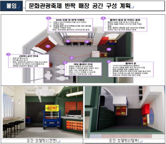 [이데일리 김미경 기자] 문화체육관광부는 한국관광공사와 함께 문화관광축제를 알리기 위해 서울 성수동에서 문화관광축제 반짝매장(팝업스토어)을 6월 28~30일과 8월 14~20일 두 차례 운영한다고 27일 밝혔다.