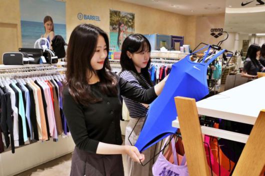 25일 서울 중구 롯데백화점 본점 에비뉴엘 4층 수영복 매장에서 고객들이 여름 제품을 살펴보고 있다. [사진=롯데백화점] |