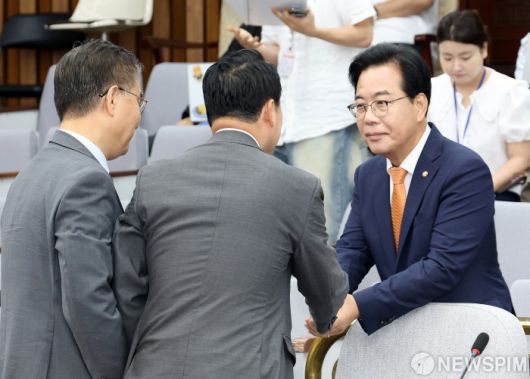 [서울=뉴스핌] 정일구 기자 = 송언석 국민의힘 원내대표가 27일 오전 서울 여의도 국회에서 열린 원내대책회의에 참석하고 있다. 2025.06.27 mironj19@newspim.com