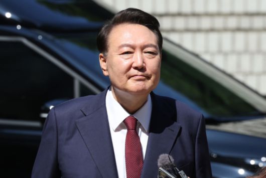 윤석열 전 대통령이 23일 서울 서초구 서울중앙지방법원에서 열린 내란 우두머리 혐의·직권남용 권리행사 방해 혐의 사건 8차 공판에 출석하고 있다. 〈사진=사진공동취재단·연합뉴스〉 |