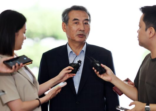 윤석열 전 대통령 부인 김건희 여사와 관련한 각종 의혹 사건을 수사하는 민중기 특별검사가 27일 서울 서초구에 마련된 특검팀 사무실로 출근하며 취재진 질문에 답하고 있다. (사진=연합뉴스) |