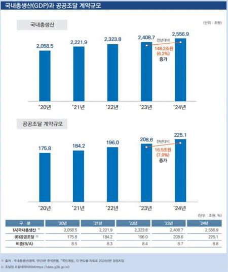 특히 지난해 공공조달 규모는 국내 GDP의 9% 수준에 해당한다. 그만큼 공공조달이 내수와 민생경제에 주는 영향력이 커졌다고 볼 수 있는 대목이다.