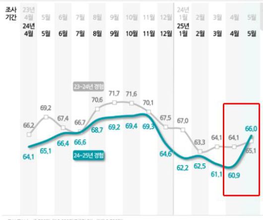 소비자 리서치 기관 컨슈머인사이트가 25일 발표한 자료에 따르면, 5월 국내 숙박여행 경험률은 66%로 전월보다 5.1%포인트 증가했다. 이는 코로나19 이전 수준까지 회복한 수치다. 반면 같은 기간 해외여행 경험률은 35.1%로, 지난 1년간 33~35%대를 오가는 정체 양상을 이어갔다.