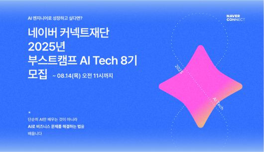 [아이뉴스24 정유림 기자] 비영리 교육재단인 네이버 커넥트재단은 오는 8월 14일까지 인공지능(AI) 엔지니어(개발자)를 양성하는 '부스트캠프 AI 테크' 과정의 8기 참여자를 모집한다고 27일 밝혔다.