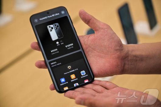 화웨이 직원이 23일 상하이 황푸 지역에 위치한 화웨이 상하이 플래그십 스토어에서 새로운 화웨이 푸라 80 울트라 스마트폰을 선보이고 있다. 2025.6.23 ⓒ AFP=뉴스1 ⓒ News1 강민경 기자 |