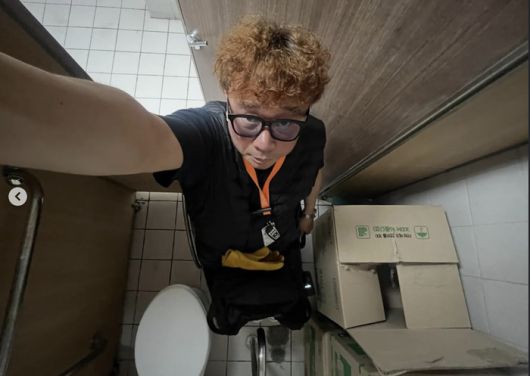 사진에는 강원래가 장애인 화장실 칸에 들어간 모습이 담겼다. 종이 박스가 한 켠에 쌓여있어 휠체어가 움직일 여유가 없어보인다. 특히 적치된 짐들 때문에 휠체어를 탄 상태로를 문 조차 닫을 수 없는 상황이다.