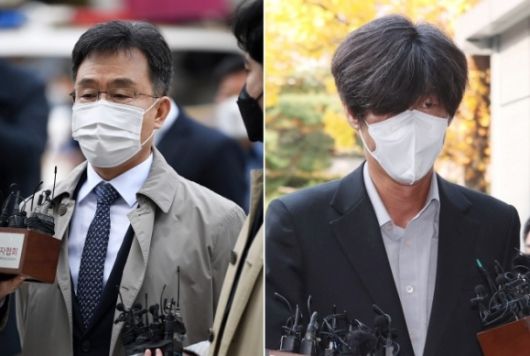 경기 성남시 대장동 개발 로비·특혜 의혹의 핵심 관계자인 화천대유 대주주 김만배씨(왼쪽)와 남욱 변호사의 모습. 오장환 기자· 연합뉴스 |