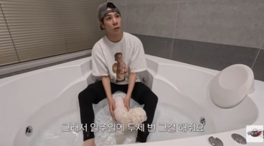 [OSEN=김나연 기자] 가수 정동원이 반려견을 손수 목욕시키는 일상을 전했다.