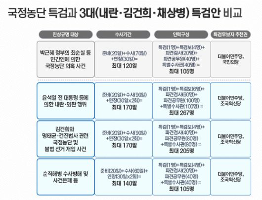 이재명 대통령 취임 후 처음으로 열린 국회 본회의에서 이날 여당인 더불어민주당 주도로 검사징계법과 '3특검법(채 해병·내란·김건희 여사 특별검사법)'이 일제히 통과됐다. '김건희 특검법에'선 △수사와 재판이 진행 중인 도이치모터스 주가조작과 명태균·건진법사 등 관련 선거개입 혐의 외에도 △삼부토건 주가조작 의혹 △창원산단 선정 관련 국가기밀 유출 의혹 △채상병 사망사건 및 세관마약 사건 구명 로비 의혹 등이 포함됐다. 이재명 대통령은 10일 '3특검법'이라 불리는 내란∙김건희∙채상병 특검법 공포안을 심의 의결했다.
