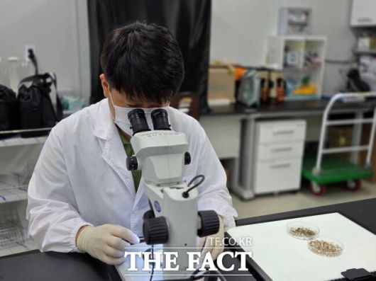 경기도보건환경연구원 관계자가 일본뇌염 매개모기를 분류하고 있는 모습 /경기도 |