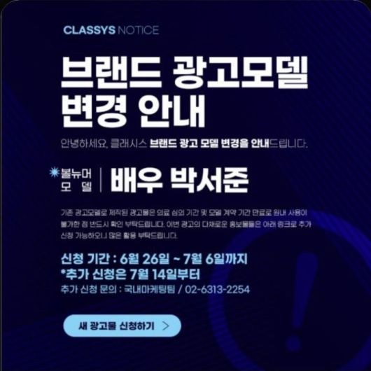 피부미용 의료기기 전문 기업 클래시스가 '볼뉴머' 모델을 배우 박서준으로 교체했다. 이는 기존 모델 김수현이 미성년 교제 의혹으로 모델에서 강판되며 이뤄진 조치다.