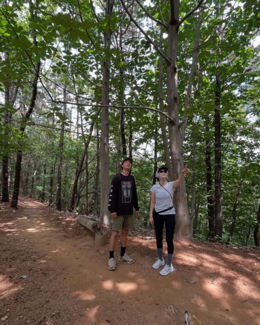 사진에는 전혜진이 남편 이천희와 함께 산길을 걸으며 여유로운 시간을 보내는 모습이 담겨있다. 두 사람은 편안한 차림에도 우월한 비주얼을 뽐내 시선을 사로잡는다.