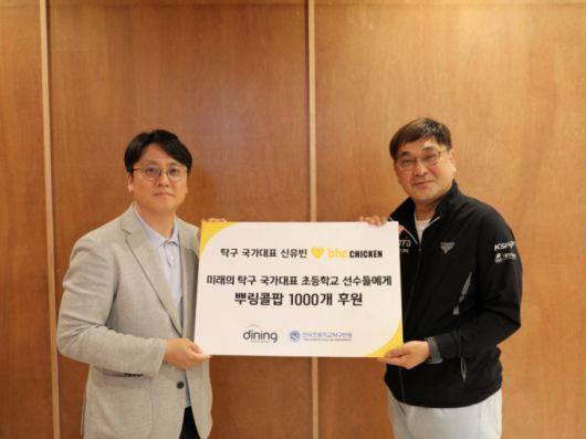bhc는 지난 25일 한국초등학교탁구연맹에에 뿌링콜팝 1000개 상당의 상품권을 전달하는 기부 전달식을 열었다. 이와 함께 신유빈 선수의 우승을 기념해 25일부터 30일까지 공식 인스타그램에서 1000만원 상당의 bhc 상품권을 증정하는 특별 행사도 진행한다.